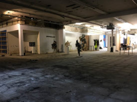 Materiaal: verzinkt staal (constructie profielen en dejo roosters) en geperst bamboe plaatmateriaal. (karamel)