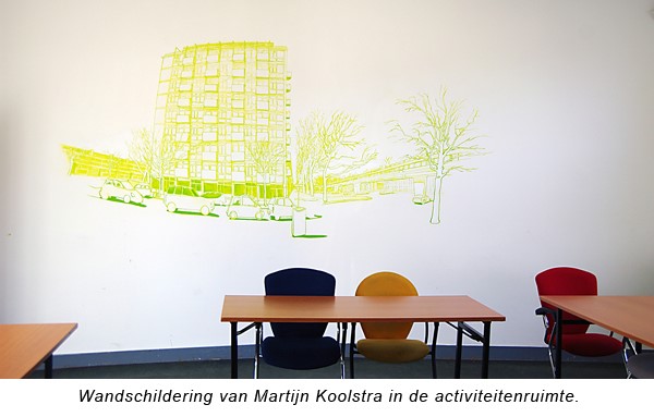 Maar behalve voor de natuur is er ook de kunst waarvoor een bezoek bij ons altijd de moeite waard is. Bekijk de recent voltooide muurschildering van Martijn Koolstra in onze activiteitenruimte. Deze is mede tot stand gekomen door het Centrum Beeldende Kunst. Onze dank hiervoor!
