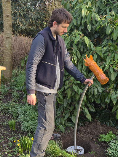 Op 11 maart arriveerde het eerste werk voor de 2026 zomerexpositie. Jakob van Klinken plaatste drie beelden in de achtertuin.