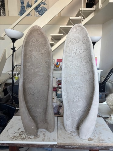 De voorbereidingen voor het werk van Teresa Hunyadi @teresahunyadi en Pepijn van den Nieuwendijk @cirquedepepin verlopen voorspoedig. Inmiddels hebben zij vijf paar oren gemodelleerd. Een deel van de werken is al bisque gestookt en de eerste glazuurtesten zitten momenteel in de oven. Daarmee ligt het proces mooi op schema.