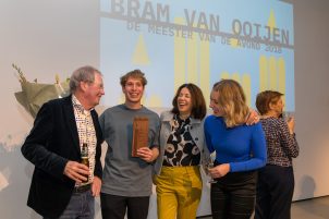 In een bomvolle Garage koos de jury gisteravond de Meester 2018: Bram van Ooijen! Door zijn afstudeerwerk WIHDATOPIA en in een fantastisch tegenspel in de discussie met de jury haalde Bram de promotieprijs binnen. Die €5.000 maakt hem overigens niet zoveel uit. Hij stelt juist gebruik te willen maken van het netwerk van de Fleur Groenendijk Foundation.